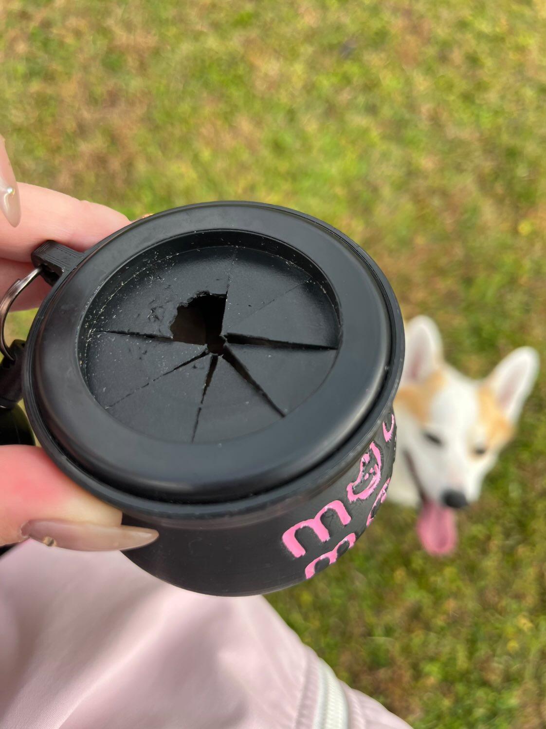 MOG巾着に起こる悲劇、それは執拗なオヤツへの執着によってもたらされる蓋の破壊です。笑